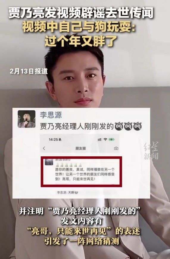 期间还发现乌龙,一度传出去世的是贾乃亮,而贾乃亮本人发文报平安,后经多人证实,去世的是高亮而不是贾乃亮。